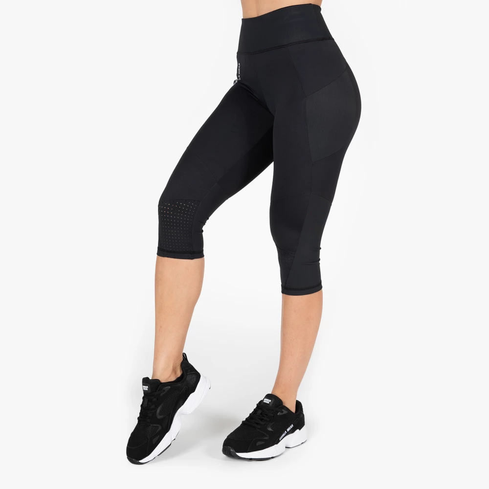 Monroe Cropped Leggings est un legging court pour femme, fabriqué par la marque Gorilla Wear. Ce legging est fabriqué à partir de 73% de polyester et 27% d'élasthanne. Ce legging comporte une poche latérale avec un zip, une ceinture côtelée et des tissus extensibles le rendant idéal à porter durant vos entraînements. Il a été raccourci et des inserts en mesh sont visibles sur le bas du legging pour une meilleure ventilation.