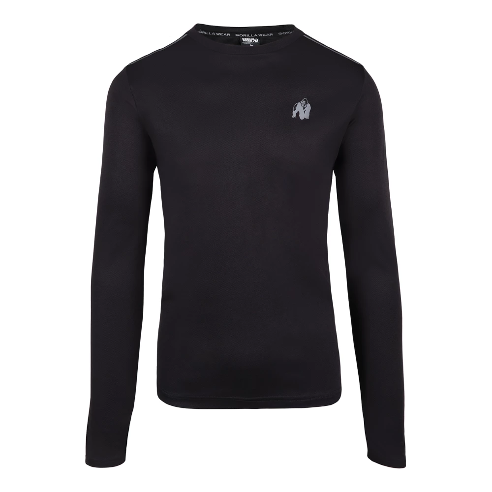 Washington Long Sleeve est un t-shirt à manches longues de sport fabriqué par la marque Gorilla Wear. Ce t-shirt est composé à 100% de polyester. Il possède une coupe ajustée avec des détails réfléchissants. Sa maille respirante et son polyester léger le rend très confortable pour l'entrainement.